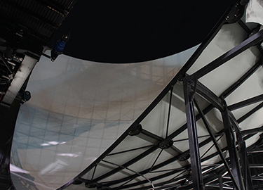 我公司的球幕使用沖孔鋁板為基材,采用定制高端光學原料吊裝工藝噴涂,可最大程度的保證幕面的均勻性。